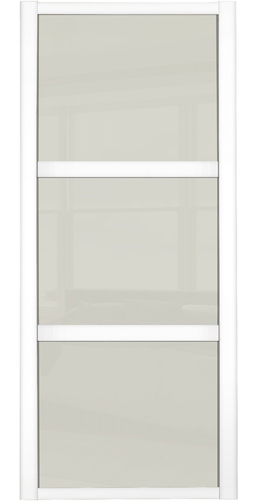 Three panel arctic white glass wardrobe door with white frame from our Shaker range.
