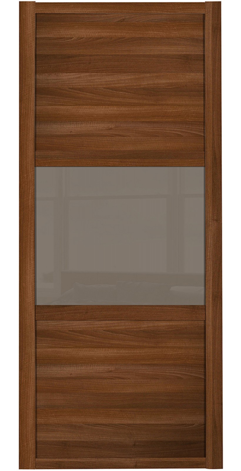 Three panel walnut cappuccino glass wardrobe door with walnut frame from our Shaker range.